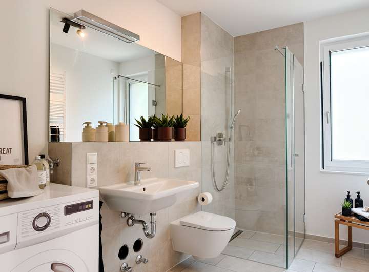 * Komplett ausgestattete Bäder u.a. mit Duschabtrennung aus