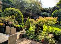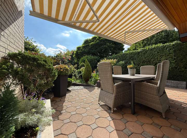 + Idyllischer, Garten mit sonniger Terrasse