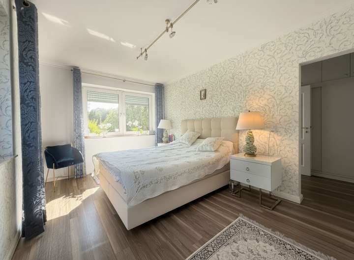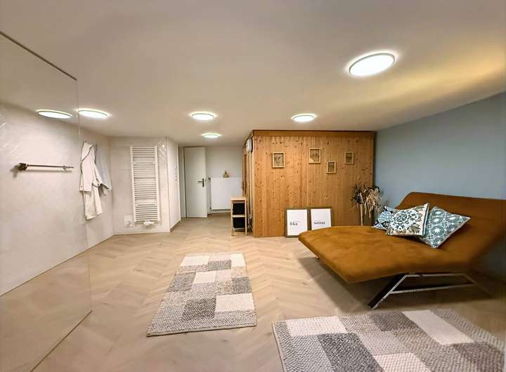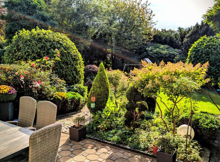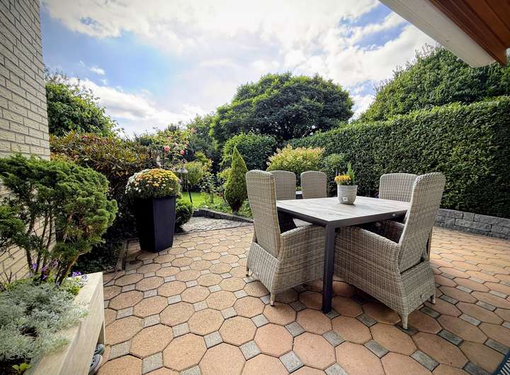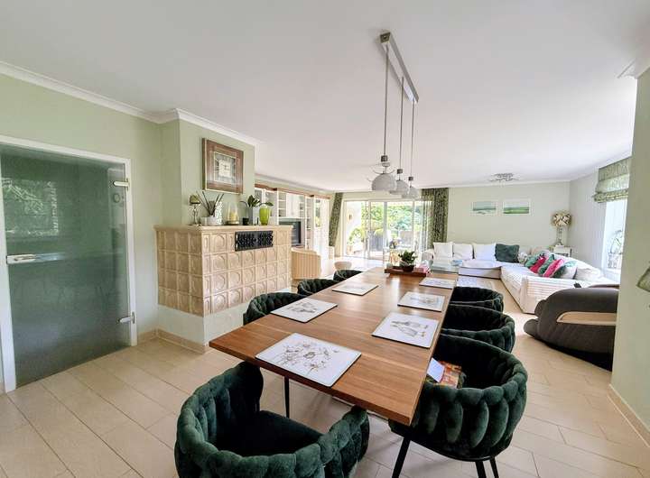 Dieses charmante Anwesen ist ein Zuhause, das alles vereint: + ein großzügiges Wohnambiente mit einem idyllischen Garten, + einen exklusiven Bereich für Wellness und Fitness + maximaler Flexibilität zum Wohnen oder Arbeiten Das Haus empfängt Sie mit einer zeitlosen, hellen Klinkerfassade und fügt sich harmonisch in die ruhige und grüne Umgebung ein. Die massive Bauweise verspricht Langlebigkeit und ein angenehmes Wohnklima zu jeder Jahreszeit. Ein wahrer Schatz ist der uneinsehbare, eingewachsene Garten. Eine private Oase, die mit altem Baumbestand, blühenden Sträuchern und gepflegten Rasenflächen zum Spielen und Entspannen einlädt. Das Erdgeschoss überzeugt mit einer modernen und großzügigen Raumaufteilung. Den Mittelpunkt bildet das fast 60 m² große Wohn- und Esszimmer, das mit seinem pflegeleichten Fliesenboden in Holzoptik und dem direkten Zugang zur Terrasse besticht. Große Fensterflächen geben den Blick in den herrlichen Garten frei und schaffen einen fließenden Übergang zwischen Innen und Außen. An kühleren Tagen sorgt ein eleganter Kachelofen für wohlige Wärme und eine außergewöhnlich gemütliche Atmosphäre. Mit insgesamt drei Schlafzimmern und zwei Bädern bietet diese Etage eine optimale und familienfreundliche Aufteilung. Die neuwertige Premium-Einbauküche ist mit ausschließlich Markengeräten ausgestattet und bietet dank cleverer Planung viel Stauraum sowie Platz für einen gemütlichen Essbereich. Über eine Treppe gelangen Sie in das Obergeschoss, das neben einer separaten Einliegerwohnung, zwei weitere große Studioräume beherbergt und vielfältige Nutzungsmöglichkeiten bietet – ob als Homeoffice, Spielparadies für die Kinder, Hobbyraum oder als luxuriöser Gästebereich. Die Einliegerwohnung im Obergeschoss generiert Mieteinnahmen oder dient als flexibler Wohn- bzw. Büroraum. Im modernisierten Souterrain erwartet Sie ein privater Wellnessbereich (Sauna, Dusche, WC), ein separater Fitnessraum sowie praktische Hobby- und Stauräume.