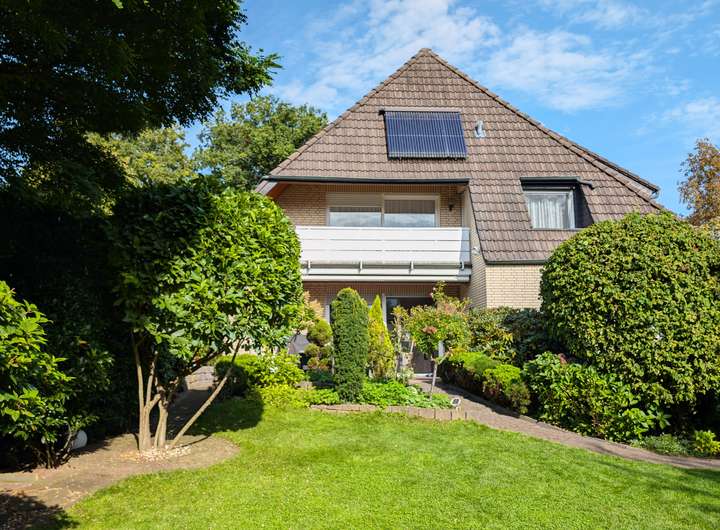 Eckdaten & Highlights auf einen Blick: Haus & Grundstück: + Charmantes Ein-/Zweifamilienhaus in einer ruhigen Anliegerstraße in Oberneuland + Massive Bauweise mit klassischer Klinkerfassade + Baujahr: 1983 + Grundstücksfläche: 1070 m² + Wohnfläche: ca. 295 m² + Nutzfläche: ca. 270 m² + Zimmer: 8 + Badezimmer: 3 + Gaste-WC: 4 + Einkaufsmöglichkeiten, Gastronomie und Infrastruktur in unmittelbarer Nähe + Gute Anbindung an den ÖPNV, den Bahnhof Oberneuland sowie die Autobahnen A1 und A27 Besondere Merkmale: + Beeindruckende Wellness-Oase mit Sauna, Dusche, Fitnessraum und Relaxzone + Garage mit direktem Zugang zum Haus + Einliegerwohnung im Obergeschoss mit ca. 37 m² Wohnfläche Energie & Nachhaltigkeit: + Energieausweis: D + Öl Zentralheizung (Viessmann) aus dem Jahr 2009 mit 600 l Warmwasserspeicher + Solarthermische Anlage zur Unterstützung der Warmwasserbereitung + Wallbox (11 kW bis 22 kW) für E-Autos + 2 Grundwasserpumpen an 2 Brunnen zur Gartenbewässerung Komfort & Ausstattung: + Premium Küche + Fußbodenheizung im Erd- und Obergeschoss + Kachelofen für wohlige Wärme + Maßgefertigte Echtholz-Einbauschränke + Echtholzparkett im Obergeschoss + Elegante Feinsteinfliesen im Holzoptik und Design-Vinylboden im Erdgeschoss + Helle und vielseitig nutzbare Räume im Obergeschoss + Außenrollläden im gesamten Haus + Moderne Alarmanlage mit Fernsteuerung über Smartphone + Idyllischer, Garten mit sonniger Terrasse + Balkon/ Loggia im Obergeschoss + Gäste-WC sowie praktischer Abstellraum