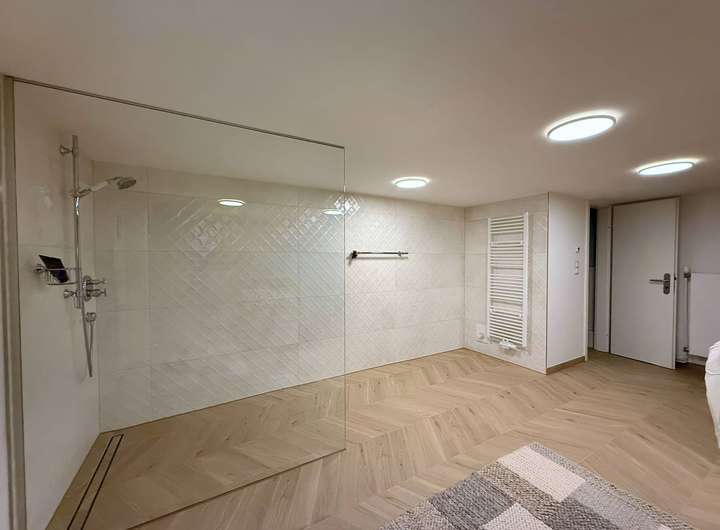 Im modernisierten Souterrain erwartet Sie ein privater Wellnessbereich (Sauna, Dusche, WC), ein separater Fitnessraum sowie praktische Hobby- und Stauräume.