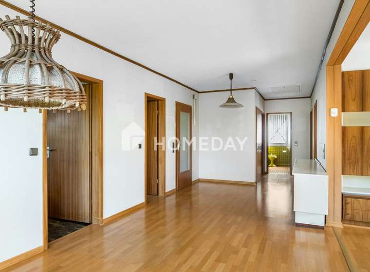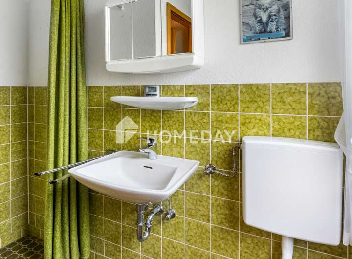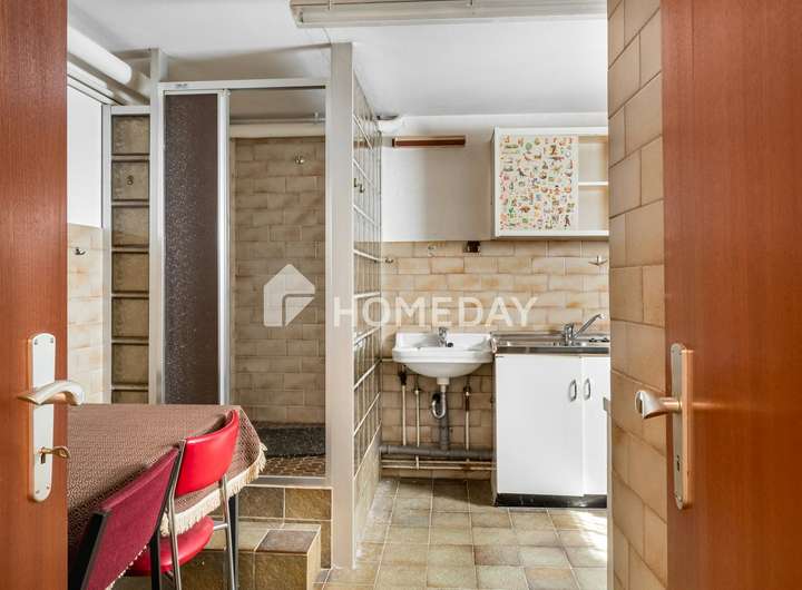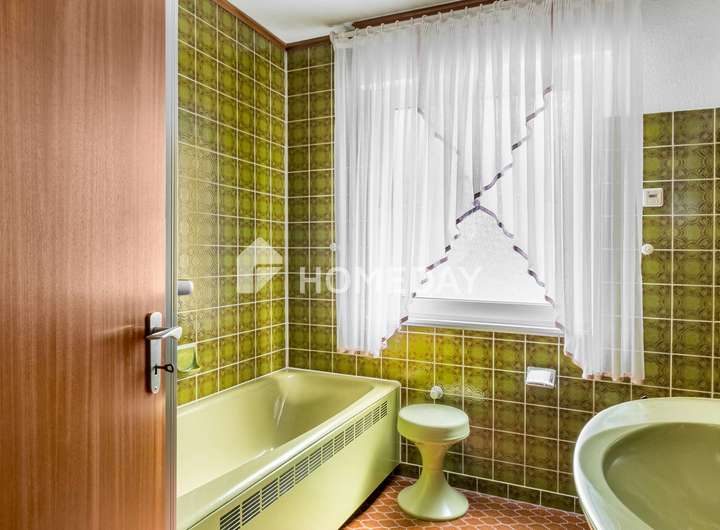 Die Wohnfläche von etwa 109 Quadratmetern verteilt sich auf vier Zimmer, die eine angenehme Kombination aus Offenheit und Rückzugsmöglichkeiten bieten. Im Erdgeschoss stehen Ihnen vier helle Räume zur Verfügung – darunter ein geräumiges Wohnzimmer als zentraler Treffpunkt für die Familie sowie drei weitere Zimmer, die flexibel als Schlafzimmer, Kinderzimmer oder Büro genutzt werden können. Die Küche ist mit einer älteren, aber gepflegten Einbauküche ausgestattet und bietet ausreichend Platz für gemeinsame Kochabende. Zwei Tageslichtbäder – eines mit Dusche, das andere mit Badewanne – sorgen für zusätzlichen Komfort im Alltag.