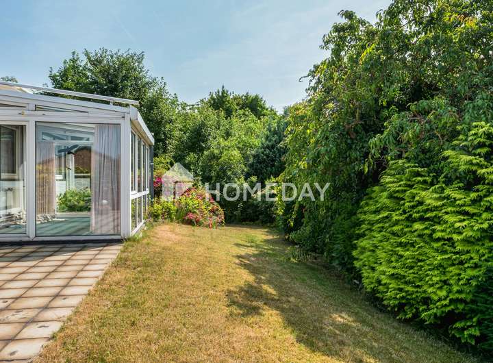 Das Grundstück bietet ideale Voraussetzungen für ein lebendiges Familienleben im Freien. Hier ist ausreichend Platz für Spielgeräte, ein kleines Gartenprojekt oder sportliche Aktivitäten. Die große Terrasse lädt zum Verweilen in der Sonne oder zum geselligen Grillabend mit Freunden ein, während der angrenzende Wintergarten sich hervorragend als ruhiger Rückzugsort oder als geschützter Raum für Pflanzen eignet. Für Ihre Fahrzeuge stehen eine Garage sowie ein zusätzlicher Stellplatz direkt davor zur Verfügung – praktisch und komfortabel zugleich.