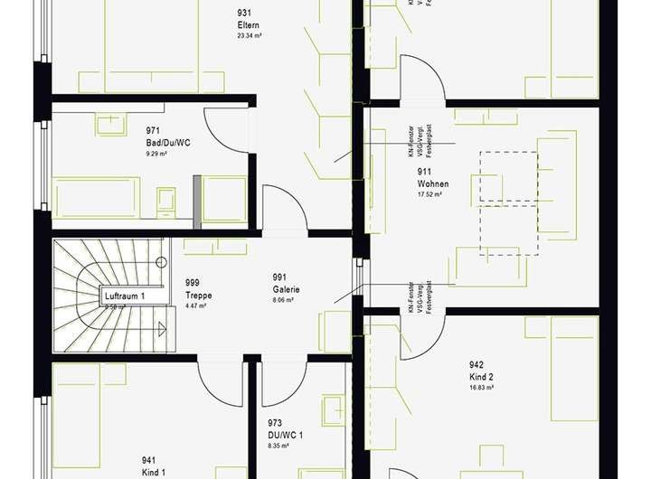 + Effizienzhaus 55 im Standard (Effizienzhaus 40 und 40-Plus sind auch möglich)