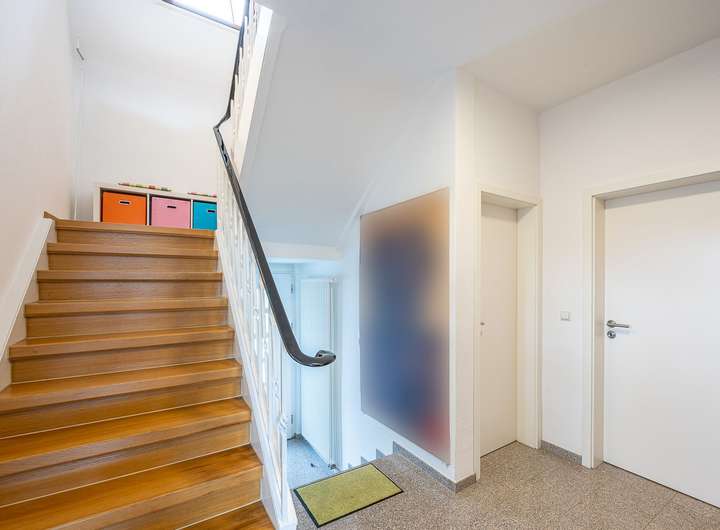 Das im Jahre 1940 erbaute Wohnhaus wurde vor wenigen Jahren aufwendig kernsaniert. Moderne und bauzeittypischer Charme der 40er Jahre treffen hier aufeinander und schaffen ein architektonisches Gesamtbild der Extraklasse. So ist zeitgemäßer Wohnkomfort mit ursprünglich erhaltenen Stilelementen, wie den Alu-Fensterläden und der wunderschönen, original erhaltenen Holztreppe, die sich vom Erdgeschoss bis ins Dachgeschoss durchzieht, gekonnt kombiniert.