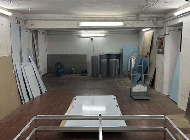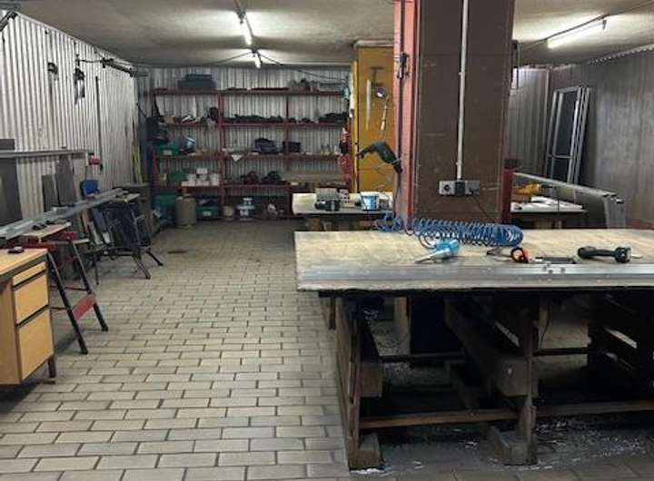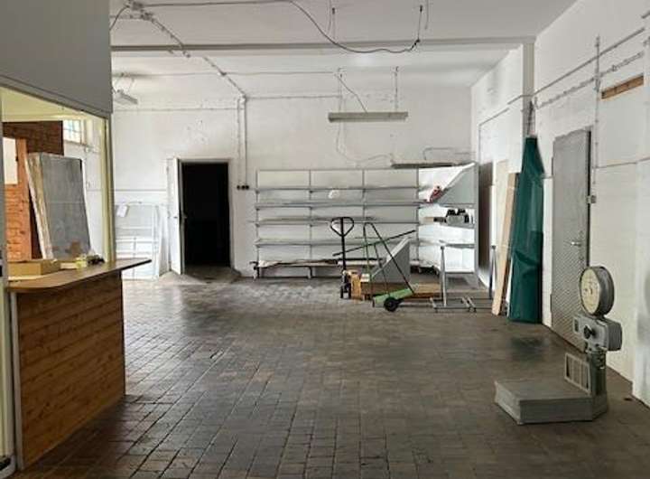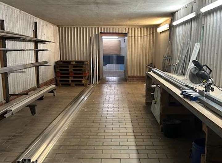 Im Erdgeschoss befinden sich Gewerbe- und Nutzflächen unterteilt in Büro-, Lager- und Werkstatträume, sowie der erste Bereich einer Maisonettewohnung im hinteren Teil des Hauses.