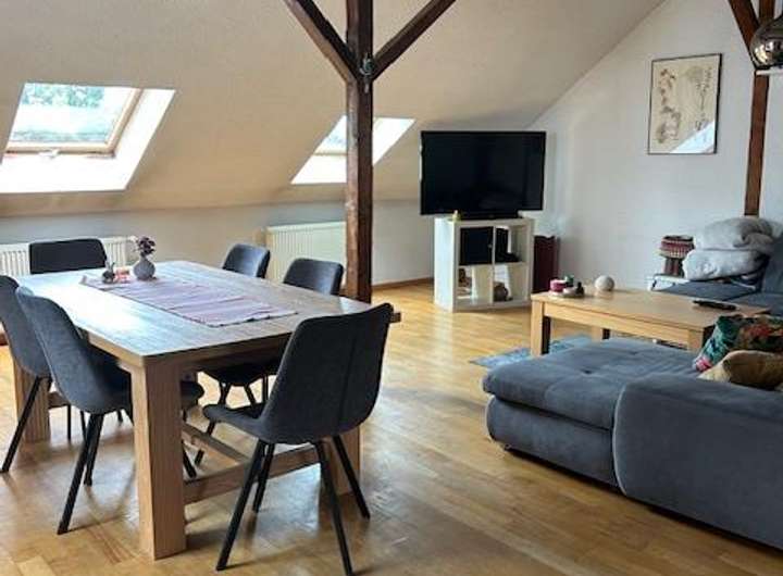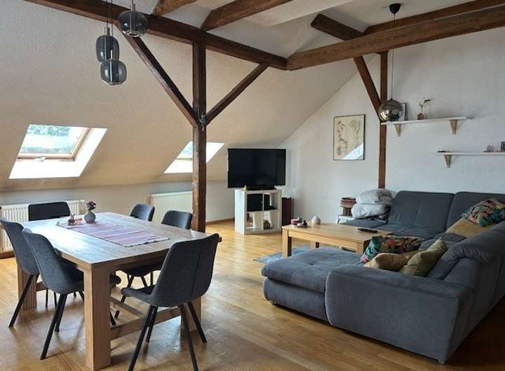 Die charmante Maisonettewohnung überzeugt mit einem großzügigen Wohnzimmer inklusive Kaminofen und Zugang zur geschmackvollen angelegten Terrasse. Eine offene Küche mit hochwertiger Einbauküche sowie ein Tageslichtbad mit Dusche und Badewanne (ca. 10 Jahre alt) runden das Erdgeschoss ab. Im Zwischengeschoss befindet sich das Schlafzimmer, und im Obergeschoss ein weiteres Zimmer sowie ein luftige Empore.