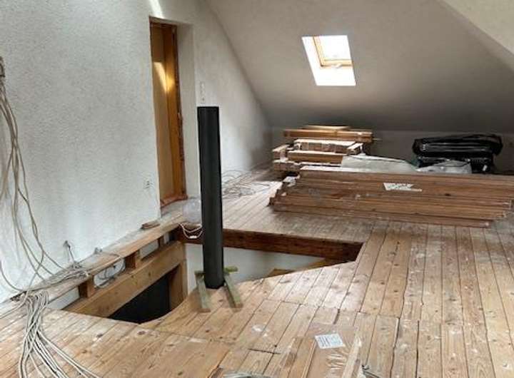 Das Dachgeschoss beherbergt die oberen Räume dieser Maisonettewohnung, eine zweite Wohnung sowie weitere Nutzflächen. Zusätzlich bietet der ausgebaute Spitzboden einen großzügigen Speicher mit zusätzlicher Nutzfläche.