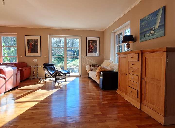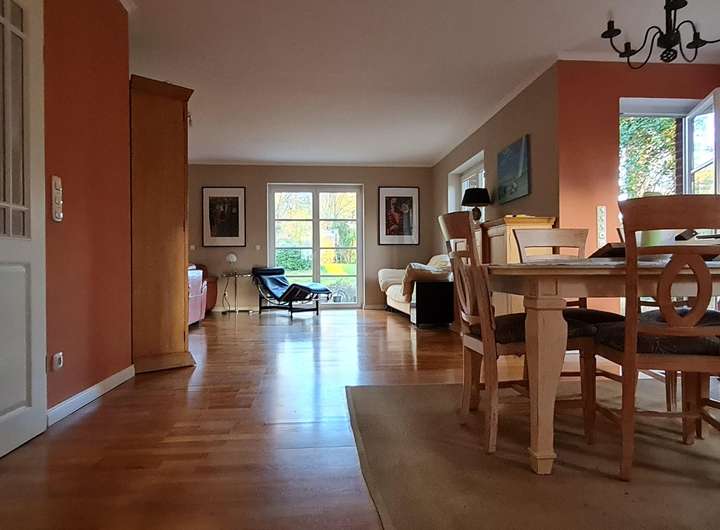 Dieses moderne Einfamilienhaus befindet sich in einer ruhigen und idyllischen Lage im beliebten Hamburger Stadtteil Rissen, einer begehrten Wohngegend, die mit ihrer waldreichen Umgebung, elbnähe und der hervorragenden Anbindung an die Innenstadt überzeugt. Das familienfreundliche Architektenhaus bietet ca. 200 m² Wohnfläche auf drei Etagen und insgesamt 6,5 Zimmern. Die großzügigen und lichtdurchfluteten Räume sowie die hervorragende Lage machen es zu einem idealen Zuhause für Familien. Mit einer durchdachten Raumaufteilung, hochwertigen Materialien und einer Vielzahl an Komfortfunktionen genießen Sie hier hohen Wohnkomfort in einer der begehrtesten Lagen Hamburgs. Der von außen nicht einsehbare Garten bietet ein herausragend schönes Naturerlebnis, 2 Terrassen und vielfältige individuelle Gestaltungsmöglichkeiten.