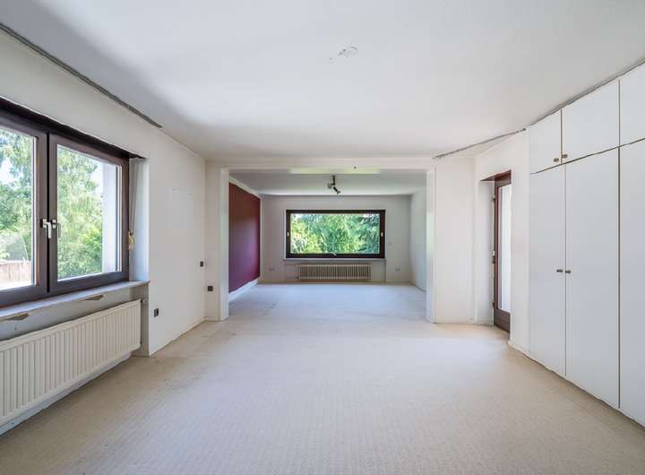 Das Haus wurde 1972 errichtet und in den Folgejahren erweitert: 1978/80 erfolgten Anbauten im Erd- und Obergeschoss. Die Immobilie befindet sich in einem gepflegten Zustand und wurde über die Jahre hinweg regelmäßig modernisiert. Lediglich einzelne Bereiche der Innenausstattung – insbesondere EBK, Bäder und Bodenbeläge im Erd- und Obergeschoss – sind modernisierungsbedürftig.