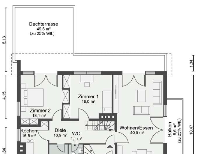 - Nutzfläche Dachgeschoss: 43 m²