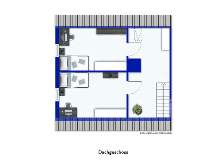 Im Dachgeschoss des Hauses gibt es zwei gleichgroße Zimmer, welche auch bereits mit neuen Fenstern versehen wurden. Diese Zimmer bieten sich an als Kinderzimmer oder Arbeitszimmer.