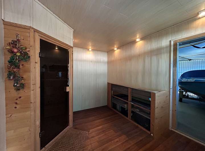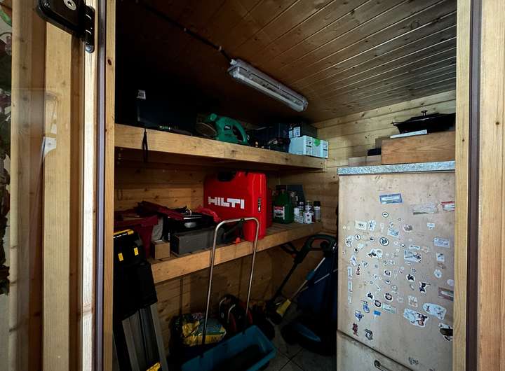 Der Garten rundet das Gesamtbild ab. 682 Quadratmeter schaffen eine grüne Oase, die sowohl Platz für lebendige Familienmomente als auch für stille Augenblicke bietet. Hier lassen sich Spiele spielen, Feste feiern oder einfach die Ruhe genießen. Eine Garage, ein angrenzender Schuppen und die vorbereitete Sauna ergänzen den Außenbereich um wertvolle Extras, die den Alltag bereichern.