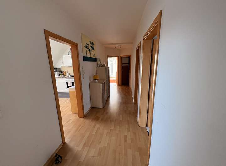 - Fußbodenheizung in Flur, Küche, Essbereich und Bädern