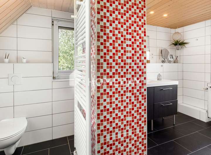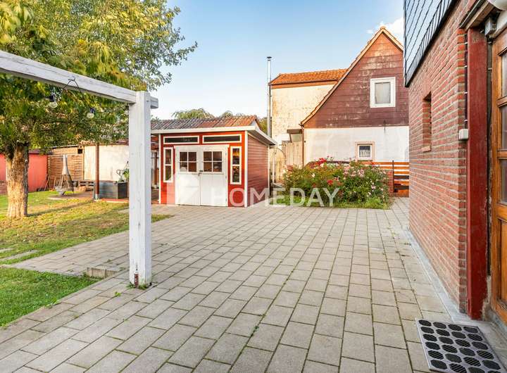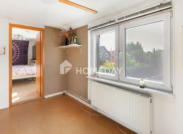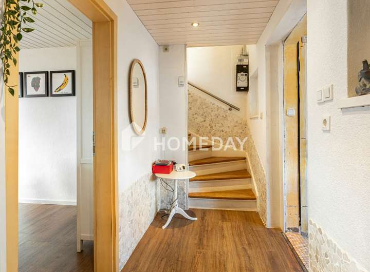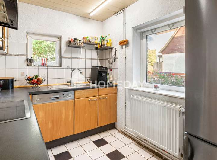 Diese gepflegte Doppelhaushälfte aus dem Jahr 1938 vereint den Charme vergangener Jahrzehnte mit fortlaufender Instandhaltung und modernen Verbesserungen. Mit einer Wohnfläche von rund 110 Quadratmetern, verteilt auf zwei Etagen und insgesamt acht Zimmer, bietet sie ideale Voraussetzungen für Familien, die viel Platz und Gestaltungsmöglichkeiten schätzen. Das Haus wurde im Laufe der Zeit kontinuierlich modernisiert: Das Dach wurde 2020 erneuert und gedämmt, die Fassade erhielt 2005 eine umfassende Sanierung inklusive Wärmedämmung. Beheizt wird die Immobilie über eine Gaszentralheizung aus dem Jahr 2010. Bei den Fenstern handelt es sich um eine Mischung aus Holz- und Kunststoffelementen mit Zweifach-Verglasung, teilweise mit Rollläden ausgestattet. An dieser Stelle könnte eine Modernisierung sinnvoll sein, um den Wohnkomfort und die Energieeffizienz weiter zu steigern. Innen besteht zudem teilweise Renovierungsbedarf, sodass Sie die Möglichkeit haben, die Räume nach Ihren eigenen Vorstellungen zu gestalten und mit neuem Leben zu füllen. Im Erdgeschoss empfängt Sie ein einladender Eingangsbereich, von dem aus alle zentralen Räume erreichbar sind. Herzstück dieser Etage ist das Wohnzimmer mit direktem Zugang zur Terrasse, die sich perfekt für entspannte Stunden im Freien eignet. Gleich nebenan befindet sich das Esszimmer, das durch seine Lage eine ideale Verbindung zwischen Küche und Wohnbereich schafft. Die Küche selbst überzeugt durch ihre praktische Aufteilung, eine gepflegte Einbauküche sowie zusätzlichen Stauraum in den angrenzenden Abstellräumen. Durch die Zusammenlegung mehrerer Räume lässt sich zudem ein offener Wohnbereich gestalten, der ein modernes und großzügiges Wohngefühl vermittelt. Ein weiteres Zimmer sowie ein Schlafzimmer im Erdgeschoss eröffnen flexible Nutzungsmöglichkeiten – sei es als Gästezimmer, Arbeitsbereich oder privater Rückzugsort. Abgerundet wird diese Ebene durch eine Waschküche, ein Gäste-WC und mehrere Abstellflächen, die für Ordnung und Funktionalität sorgen. Über die Treppe gelangt man ins Dachgeschoss, das als klassischer Schlafbereich konzipiert ist. Hier finden sich zwei Kinderzimmer, die beide durch ihre Größe viel Platz zum Spielen und Lernen bieten. Ergänzt wird die Etage durch ein weiteres Schlafzimmer sowie ein zusätzliches Zimmer, das sich vielseitig als Büro, Gästezimmer oder Hobbyraum nutzen lässt. Ein geräumiges Badezimmer mit Badewanne und separater Dusche komplettiert die obere Etage und macht sie zum komfortablen Rückzugsort für die ganze Familie. Ein besonderes Highlight dieser Immobilie ist das Grundstück mit rund 653 Quadratmetern Fläche. Hier eröffnet sich viel Platz für Ihre Ideen: Ob Spielflächen für Kinder, Platz für Sportgeräte, ein Gemüsegarten oder ein Paradies für Haustiere – der Außenbereich bietet unzählige Möglichkeiten. Die beiden Terrassen laden dazu ein, gemütliche Grillabende mit Freunden zu verbringen oder entspannt ein Buch in der Sonne zu genießen. Zusätzlich stehen ein Gartenhaus, eine Werkstatt und ein Partyraum zur Verfügung. Für Ihre Fahrzeuge ist mit einer Doppelgarage bestens gesorgt. Die Immobilie kann nach Vereinbarung frei übergeben werden und bietet Ihnen damit zeitnah die Chance, Ihr neues Zuhause zu gestalten. Fazit: Diese Doppelhaushälfte verbindet solides Wohnen in ruhiger, familienfreundlicher Umgebung mit einem außergewöhnlich großen Außenbereich. Dank laufender Modernisierungen ist das Haus sofort nutzbar, gleichzeitig lässt es Raum für Ihre individuellen Renovierungs- und Gestaltungsideen.