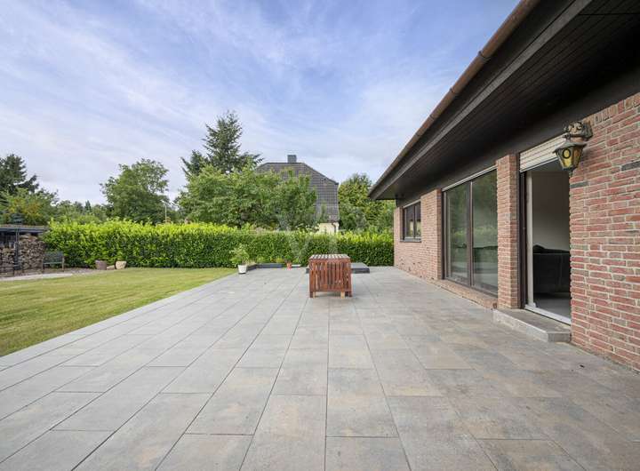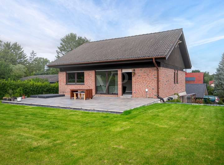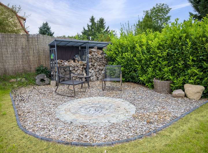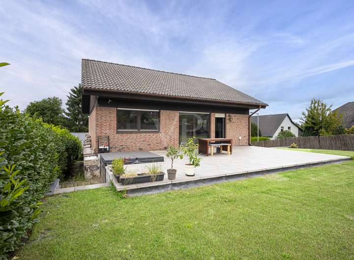 Der Garten bietet vielfältige Gestaltungsmöglichkeiten für Hobbygärtner. Die große Terrasse mit Whirlpool lädt zum Entspannen und Verweilen ein – hier lassen sich laue Sommerabende perfekt genießen.