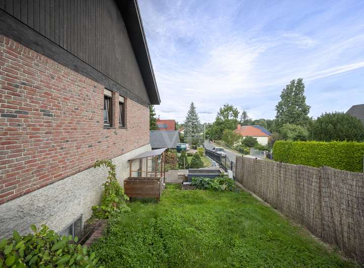 Das ca. 593 m² große Grundstück ist hangähnlich angelegt und vermittelt beinahe ein alpines Gefühl – perfekt für alle, die die Natur lieben.