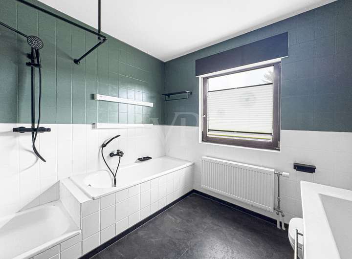 Über die Diele erreichen Sie außerdem das Schlafzimmer, einen praktischen Hauswirtschaftsraum sowie das Tageslichtbad mit Dusche und Wanne. Die großzügige Diele bietet zudem ausreichend Platz für eine Treppe, falls der Dachboden künftig ausgebaut werden sollte.