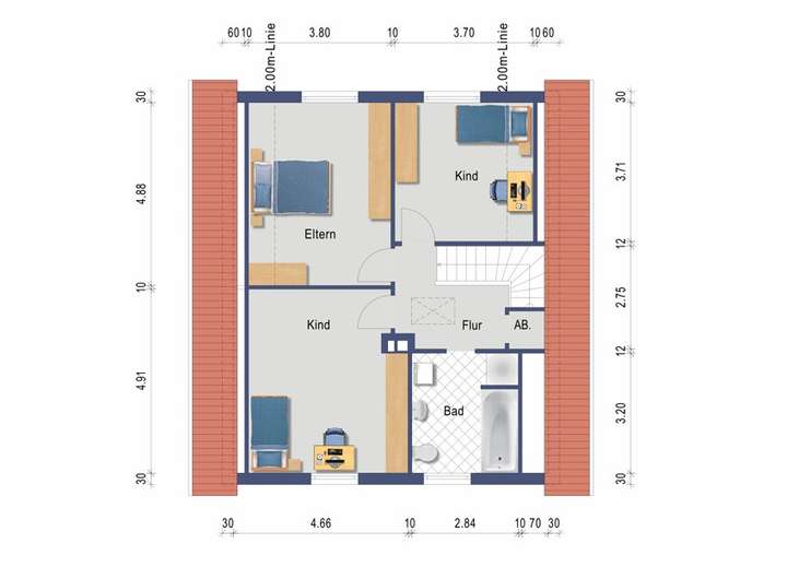 Das Obergeschoss bietet Ihnen 3 großzügige Zimmer, sowie ein Bad mit Wanne und Dusche. Über eine ausklappbare Dachbodentreppe gelangen Sie auf den Spitzboden. Dieser ist ausgebaut und bietet weiteren Stauraum.