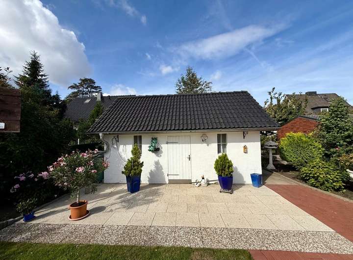 Auf dem Grundstück befindet sich eine Einzelgarage mit elektrischem Rolltor. Der Garten ist liebevoll angelegt und ist in einem sehr gepflegten Zustand. Hier finden Sie Ruhe und Entspannung!