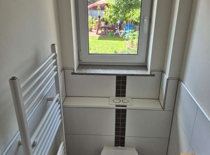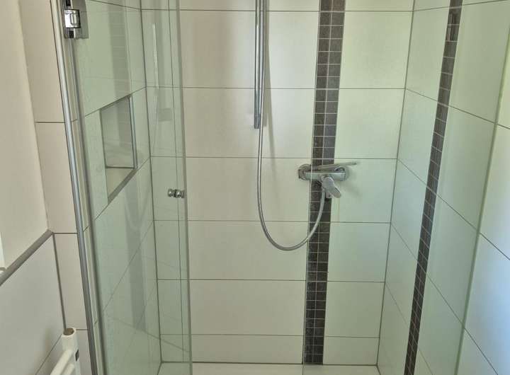 Ein stilvoll modernisiertes Badezimmer befindet sich sowohl im Erdgeschoss als auch im Obergeschoss. Beide Bäder sind mit hochwertigen Duschen ausgestattet und fügen sich harmonisch ins zeitgemäße Wohnkonzept ein.