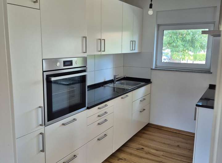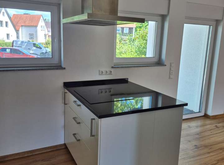Die moderne Einbauküche mit Natursteinarbeitsfläche mit Kochinsel ist im Kaufpreis enthalten und lässt keine Wünsche offen – perfekt für alle, die gerne kochen und genießen.