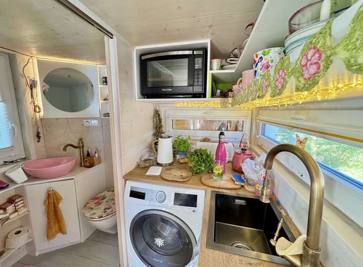 Das Tiny House ist vollständig ausgestattet und bietet alle Annehmlichkeiten für komfortables Wohnen.