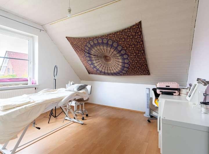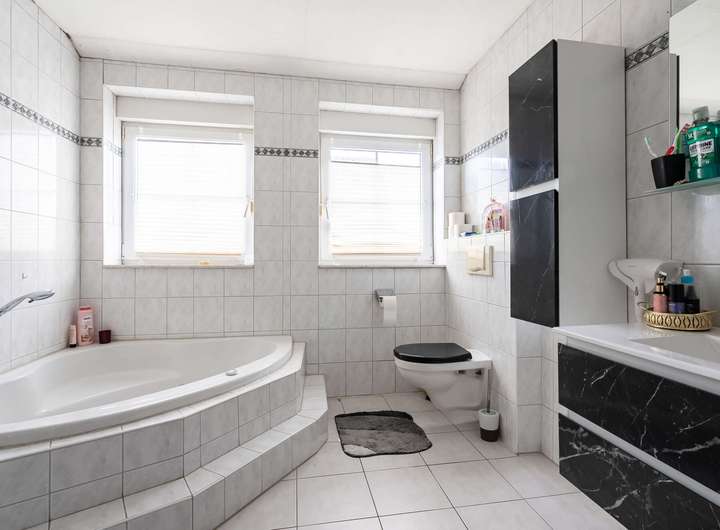 Im Obergeschoss stehen vier Schlafzimmer zur Verfügung, die sich ideal als Kinder-, Gäste- oder Elternschlafzimmer nutzen lassen. Ein weiteres Highlight ist das komfortable Badezimmer mit Dusche sowie einer Badewanne – perfekt für erholsame Stunden.