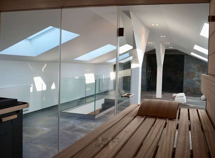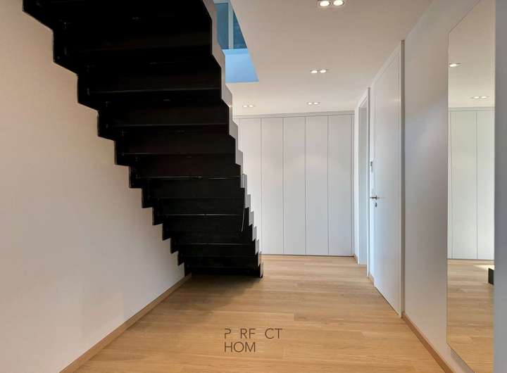 Auf ca. 220 m² Wohnfläche erwarten Sie lichtdurchflutete Räume, eine hochwertige offene Küche mit Miele-Geräten und Bora-Dunstabzug, ein großzügiger Wohnbereich mit Süd-West-Balkon, raumhohe Türen, Fußbodenheizung und Klimaanlage – und als Highlight: Ihr eigener Spa-Bereich mit Sauna und Ruhezone im Dachgeschoss.