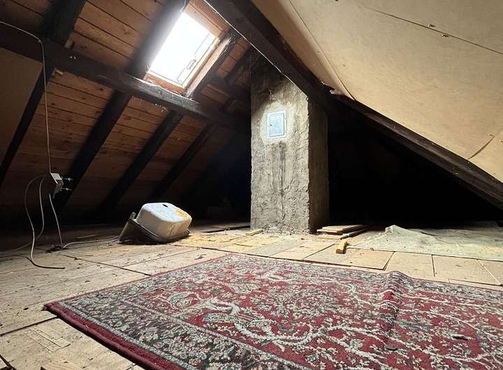 Der Dachboden ist über eine Treppe zugänglich und kann als Lagerfläche genutzt werden.