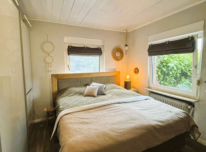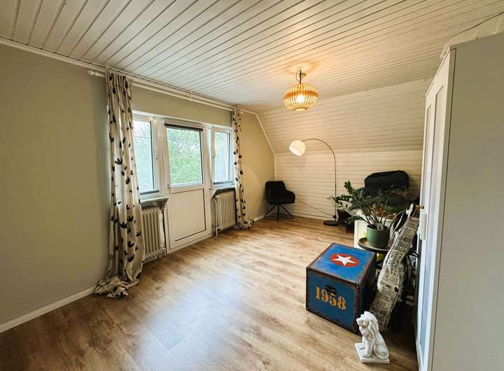 2 weitere Schlafzimmer sind an der Giebelseite des Hauses zu finden. Die Fenster und Bodenbeläge sind dort schon erneuert worden. Rollläden zum Verdunkeln sind in diesen beiden Räumen vorhanden.