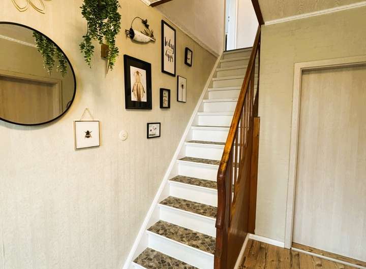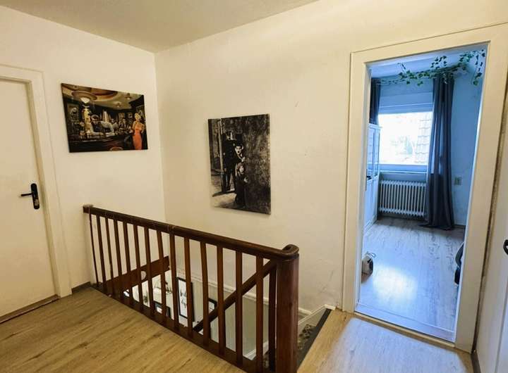 Das Obergeschoss des Hauses erreichen Sie vom ersten Flur. Eine relativ steile Holztreppe ermöglicht den Zugang.