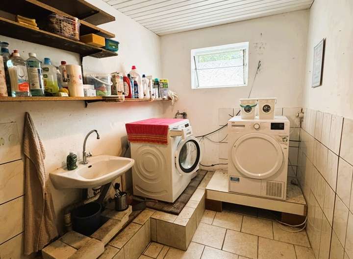 Der HWR bietet Stellfläche für Ihre Waschmaschine und Ihren Trockner, auch eine kleine Werkstatt ist hier untergebracht. Sehr praktisch ist das Waschbecken. Der Raum ist zudem gefliest und damit pflegeleicht.