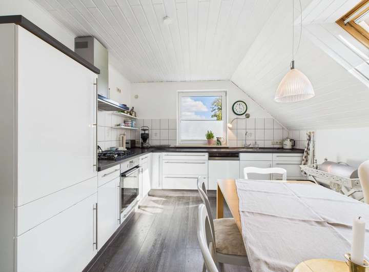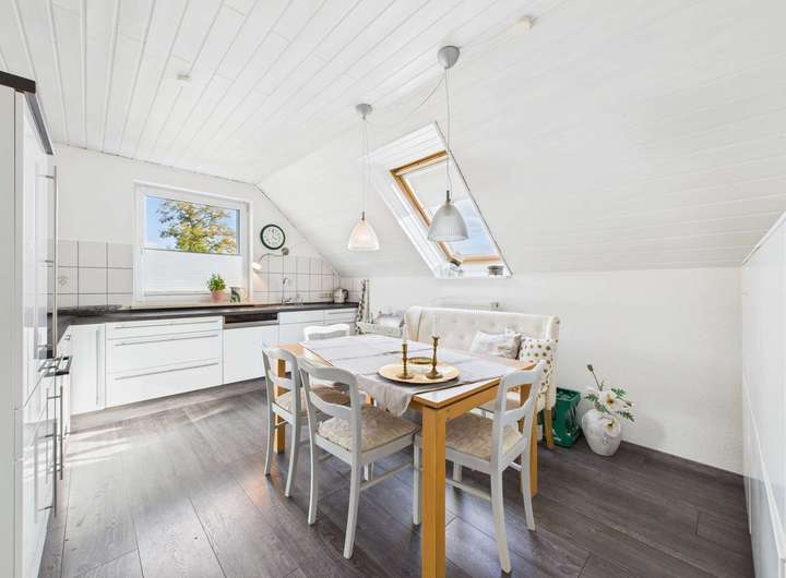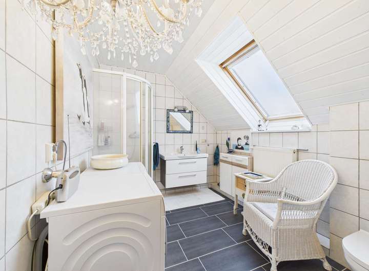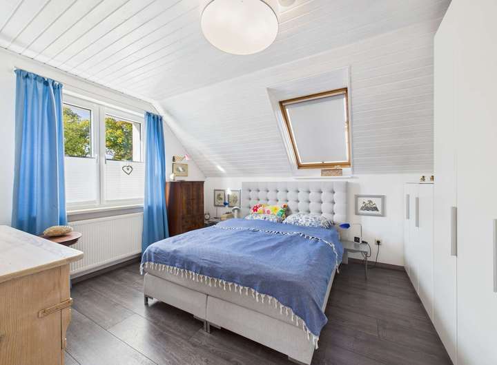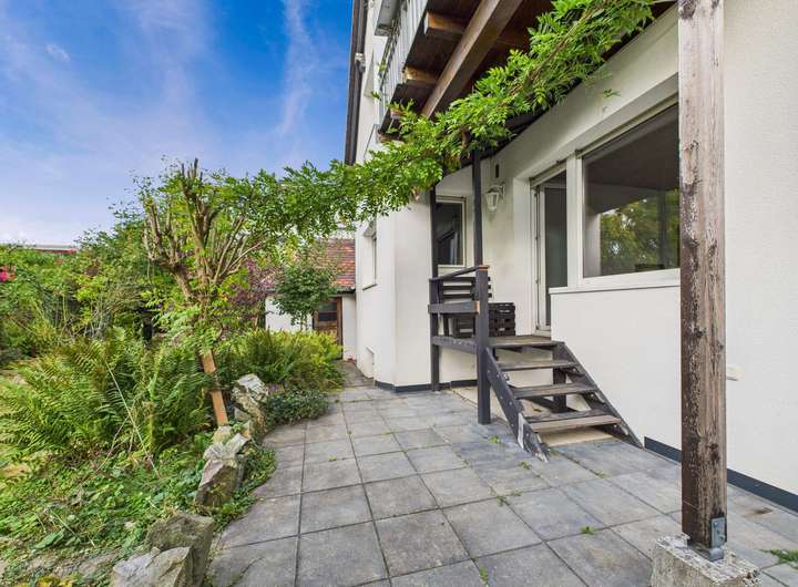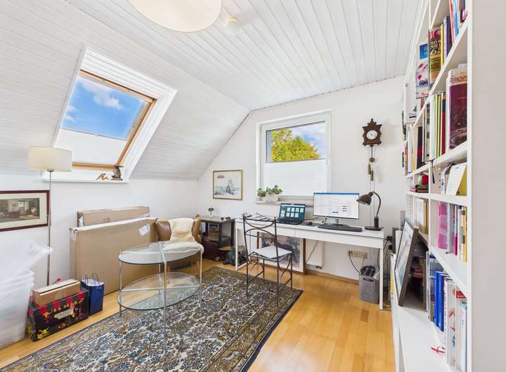 Im Erdgeschoss befinden sich drei Zimmer, eine Küche, ein Badezimmer sowie ein Gäste-WC; von dieser Ebene besteht direkter Zugang zum Garten, was zusammen mit dem durchdachten Zuschnitt der Räume eine sehr praktische und familienfreundliche Nutzung erlaubt. Das Obergeschoss weist ebenfalls drei Zimmer, eine eigene Küche, ein Bad und einen Balkon auf – damit sind zwei voll funktionsfähige separate Wohnungsabschnitte vorhanden, die jeweils alle grundlegenden Wohnfunktionen abbilden und somit hohe Flexibilität in der Nutzung bieten. Durch die in ca. 1998 erfolgten Aufstockung des Dachgeschosses wurde zusätzlicher, individuell nutzbarer Wohnraum geschaffen.