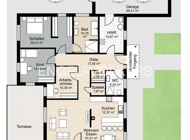 • Zwei Terrassen, davon eine überdacht – ideal zum Entspannen und Genießen