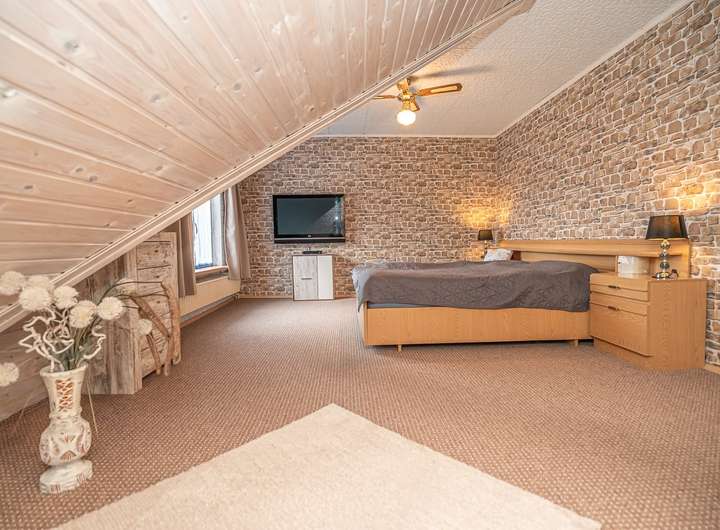 Das Haus wurde 1976 erbaut und 1983 durch eine Dachaufstockung erweitert. Mit einer Gesamtwohnfläche von über 260 m² bietet es zwei abgeschlossene Wohneinheiten: ca. 146,92 m² in der größeren und ca. 116,77 m² in der kleineren Einheit. Beide Wohneinheiten sind hell, geräumig und gut geschnitten – perfekt, um eigene Wohnideen umzusetzen.