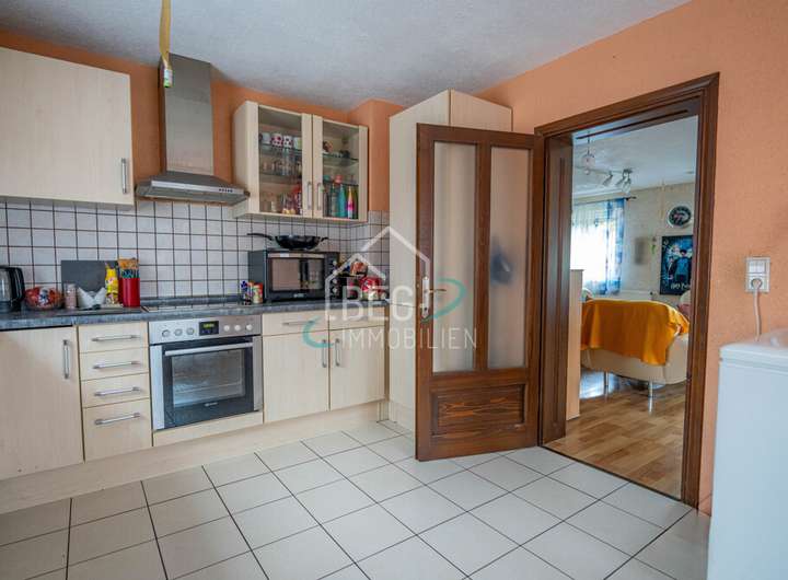Im Untergeschoss befindet sich eine gemütliche 2-Zimmer-Wohnung, die zusätzliche Mieteinnahmen generiert oder als praktischer Rückzugsort dienen kann. Die Einbauküche sowie die vorhandene Terrasse und der Balkon erweitern den Wohnkomfort erheblich und laden zum Entspannen ein.