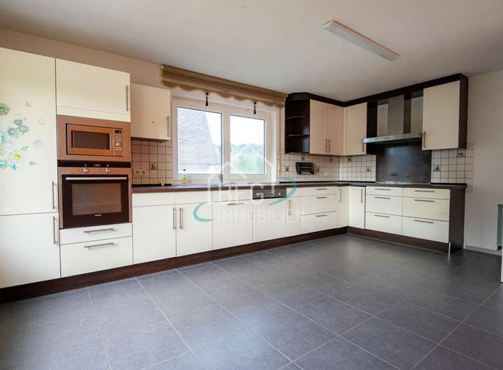 - Hochwertige Küche mit grauen Fliesen im Erdgeschoss