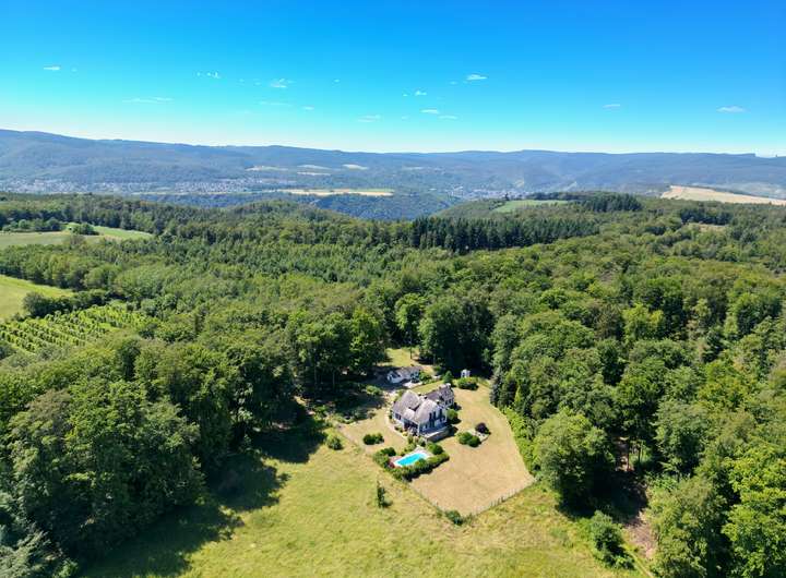 Diese einzigartige Gelegenheit dürfen Sie sich nicht entgehen lassen. Zum Verkauf steht dieses außergewöhnliche, großzügige und ruhig gelegene Landhaus. Das Grundstück ist sehr weitläufig und gepflegt. Das Anwesen erreichen Sie über ein elektrisches Tor. Auf die beiden Nebengebäude treffen Sie zuerst. Es handelt sich hierbei um zwei verschiedene Appartements. Das Hauptgebäude ist sehr geschmackvoll gestaltet und bietet auf drei Ebenen eine Gesamtfläche von ca. 271,52 m². Ergänzt wird das Anwesen durch zwei Nebengebäude mit einer Größe von ca. 36,67 m² und 55 m². Im Erdgeschoss befinden sich die Garderobe, das Gäste-WC, 4 Wohnräume, eine Küche, der Zugang zur Terrasse und ein Schlafzimmer mit eigenem Bad. Über zwei Treppen gelangen Sie ins Dachgeschoss des Objekts mit 5 Schlaf-/Gästezimmer sowie ein großes Tageslichtbad. Im Untergeschoss kommen Sie erholungstechnisch voll und ganz auf Ihre Kosten. So lässt der Wellnessbereich mit Saunen, einem Whirlpool etc. keine Wünsche offen. Beheizt wird das Objekt überwiegend über hochwertige Kachelöfen. Grundsätzlich ist die Unterstützung durch eine vorhandene Ölheizung möglich. Unweit vom Wohnhaus erwartet Sie zusätzlich ein großer beheizter Pool mit Gegenstromanlage. Das Wohnhaus selbst ist über einen Transformator an die öffentliche Stromversorgung angeschlossen. Die Wasserversorgung erfolgt über einen Zulaufbrunnen mit Pumpanlage auf einem separaten Grundstück und ist im Angebot inkludiert. Hierdurch ist bereits große Autarkie vorhanden. Eine vollständige Unabhängigkeit ist durch die Installation einer z.B. 10 kWp PV- und Solaranlage möglich. Gerne zeigen wir Ihnen bei einem persönlichen Besichtigungstermin dieses idyllische Anwesen mit allen Fassetten und Details. Wir freuen uns auf Ihre Anfrage!