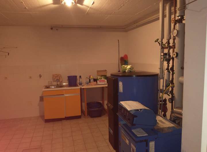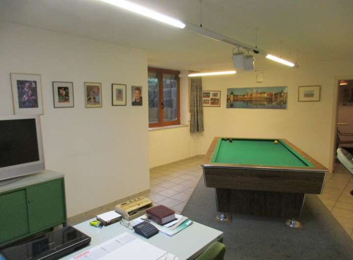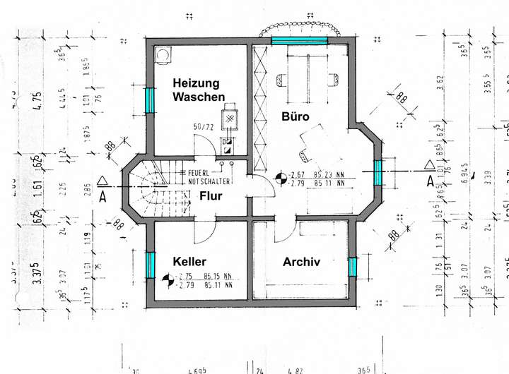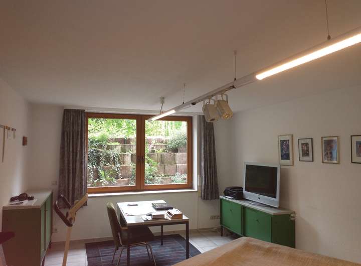 Im Kellergeschoss wurde ein großer, gut belichteter Bereich als Büro in Wohnraumqualität ausgebaut. Hier befinden sich auch weitere Kellerräume, sowie der Heiz- und Waschraum.
