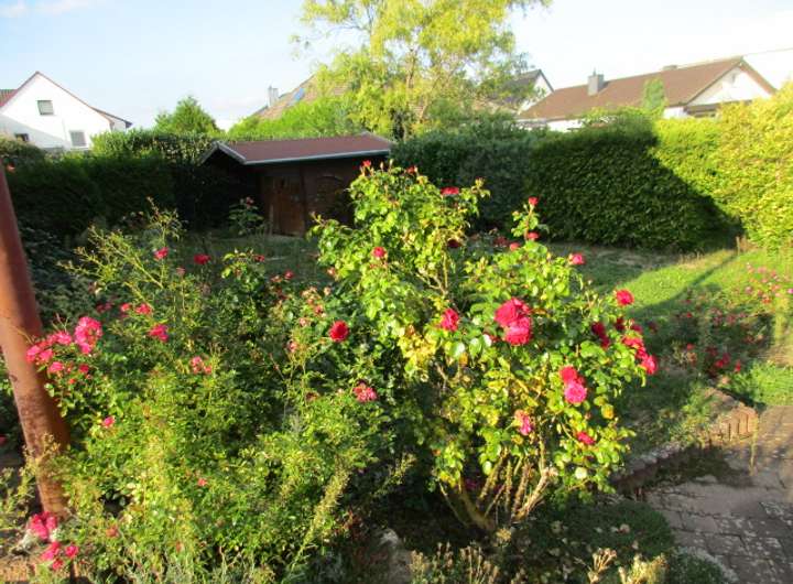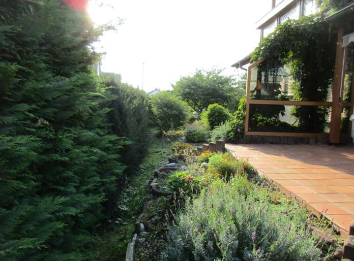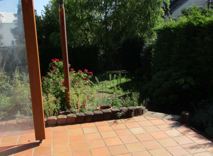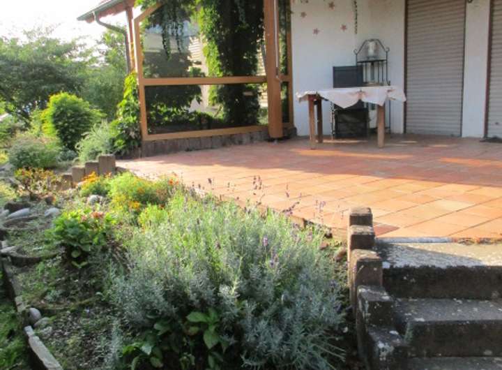 Die sonnige Gartenfläche und die Terrasse in Süd-West-Ausrichtung