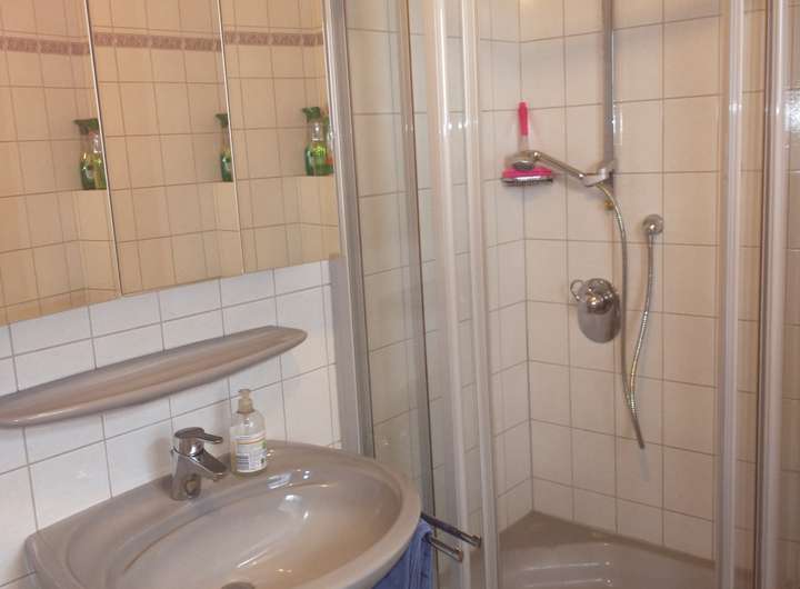 Gäste-Bad mit WC und Dusche, die großzügige Diele, sowie die