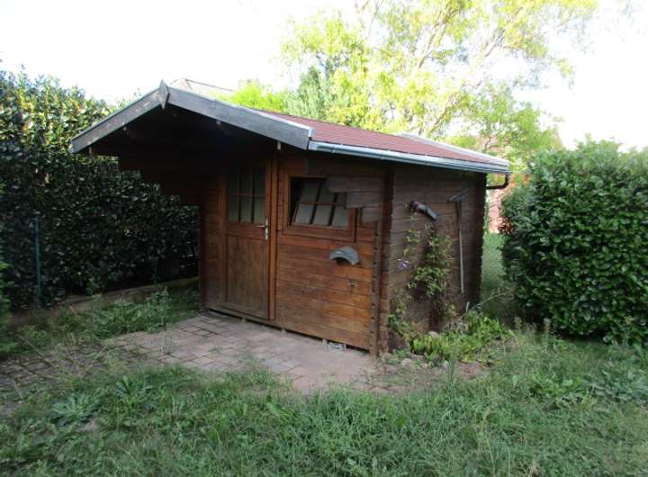 Der Doppel-Carport, ein Gartenhaus und der Spitzboden bzw.