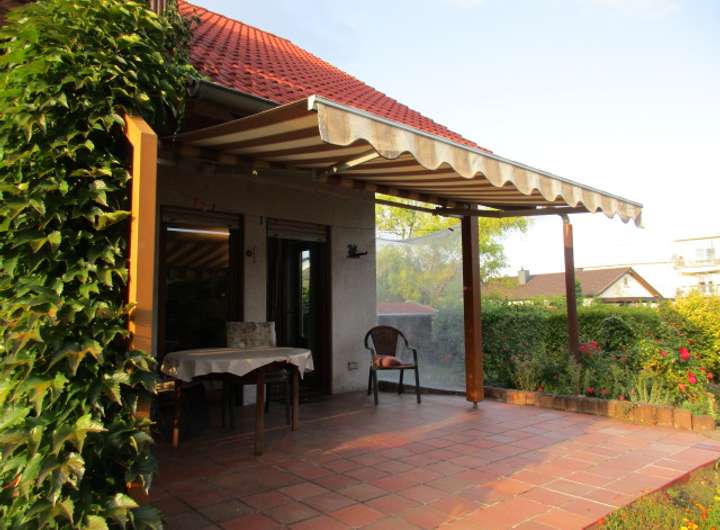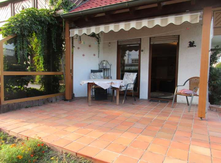 teilüberdachte Terrasse in Süd-West-Ausrichtung mit dem Zugang