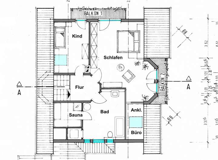oder Kinderzimmer, ebenfalls mit Zugang zum Balkon, sowie das