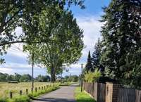 Gehsteige sind nicht angelegt, Beleuchtung und Baumbewuchs jedoch vorhanden. Parkmöglichkeiten bestehen in den anliegenden Straßen in begrenzter Zahl.