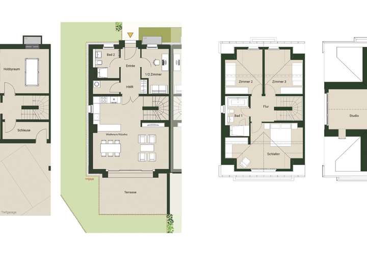Townhouse mit, vier Ebenen u.a. mit EBK, Studio, Garten und privatem TG-Zugang inkl. 2 Stellplätzen