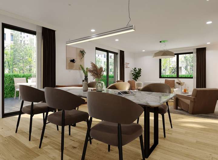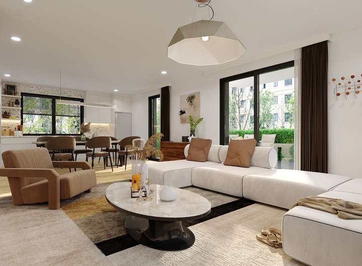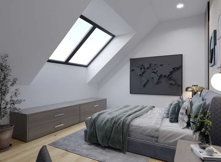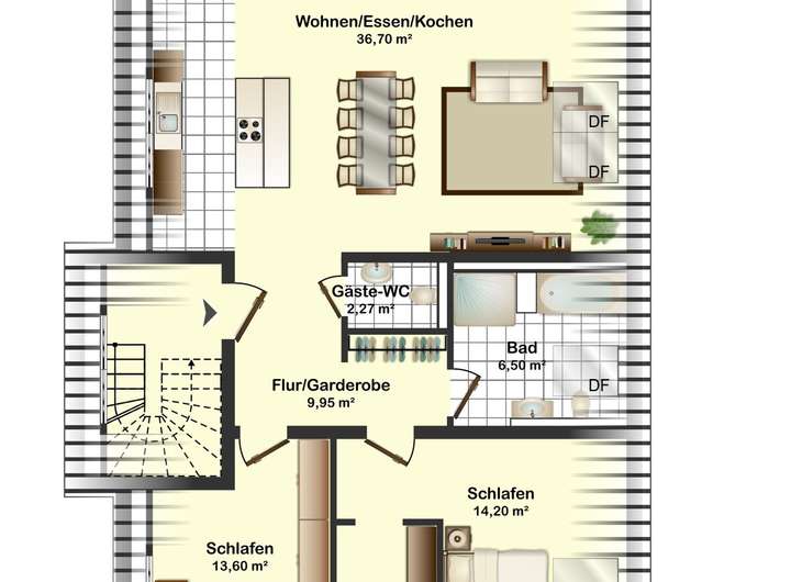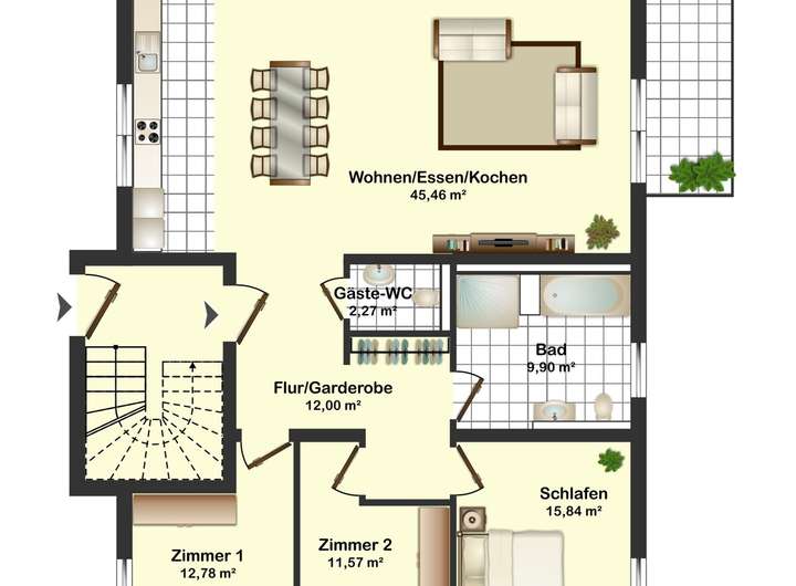 Bei den visualisierten Bildern im Innenbereich, handelt es sich um Einrichtungsbeispiele - diese sind nicht im Kaufpreis enthalten.