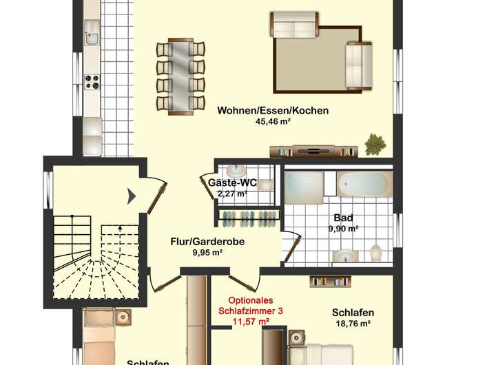 * Elternschlafzimmer 15,83 m² oder 18,76 m²