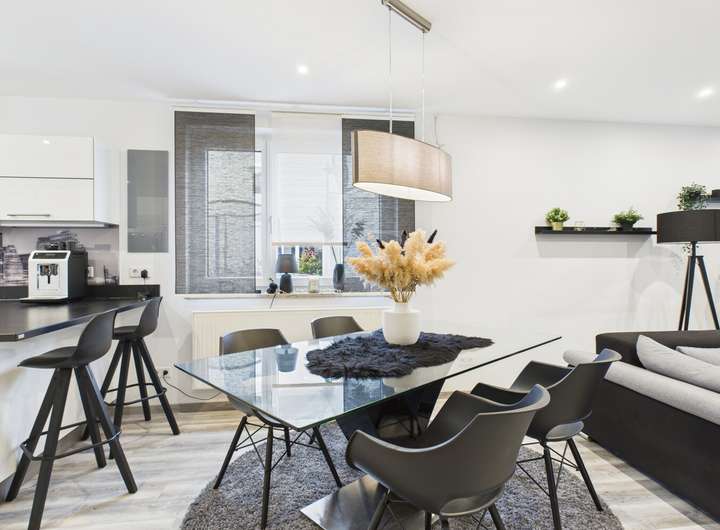 Der Eingangsbereich heißt Sie mit einem freundlichen Ambiente willkommen. Die Diele bietet ausreichend Platz für eine Garderobe und einem modernen Gäste-WC. Der offen gestaltete Wohn-Essbereich erzeugt mit großzügigen Fensterflächen optimale Lichtverhältnisse und schafft eine angenehme Wohnatmosphäre. Ein Kaminofen setzt an kühlen Tagen besondere Akzente und sorgt für behagliche Wärme. Die angrenzende, moderne Einbauküche überzeugt mit hochwertigen Geräten und viel Arbeitsfläche – ideal für alle, die Freude am Kochen und gemeinsamen Genießen haben.